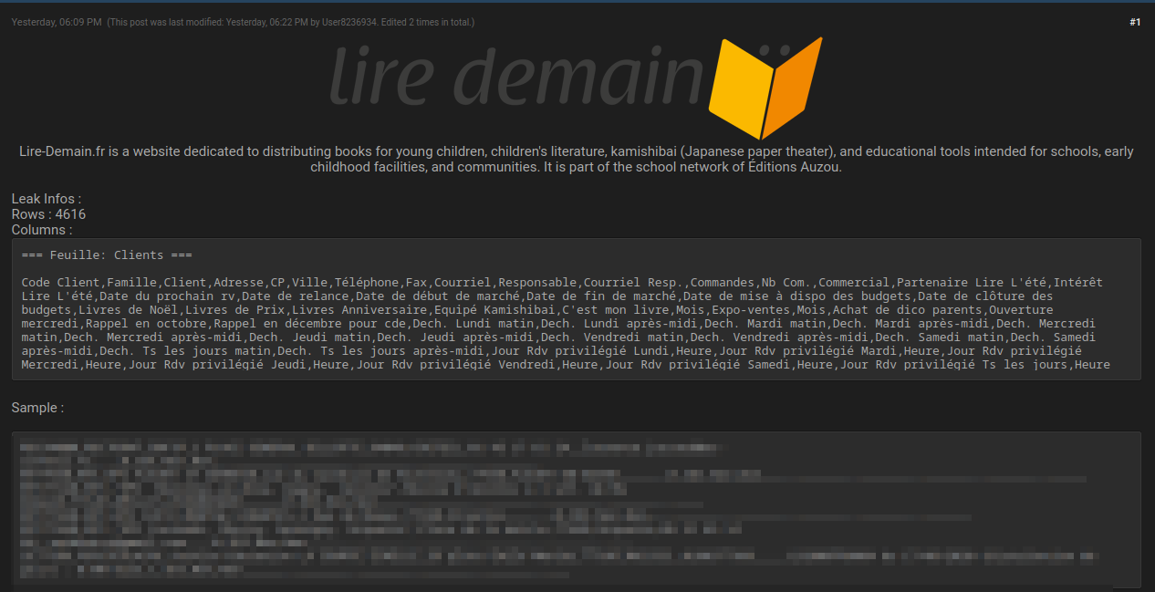 Les données exposées incluent :