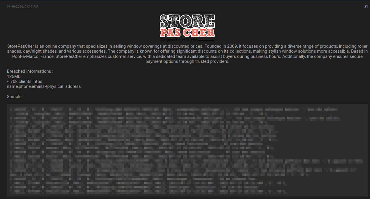Les données exposées incluent :